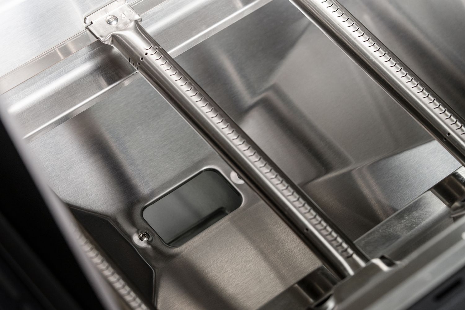 - Massive Flammenschutzbleche aus 1,3 mm Edelstahl über jedem Brenner in den Garkammern