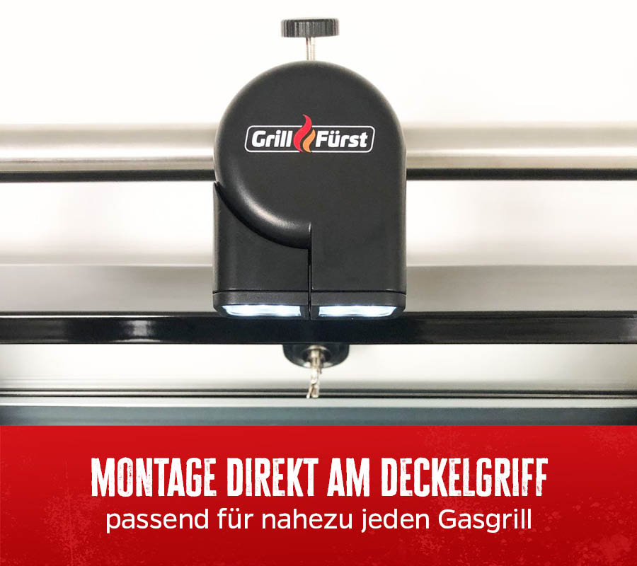 - zur Montage direkt am Deckelgriff - passend für nahezu jeden Gasgrill